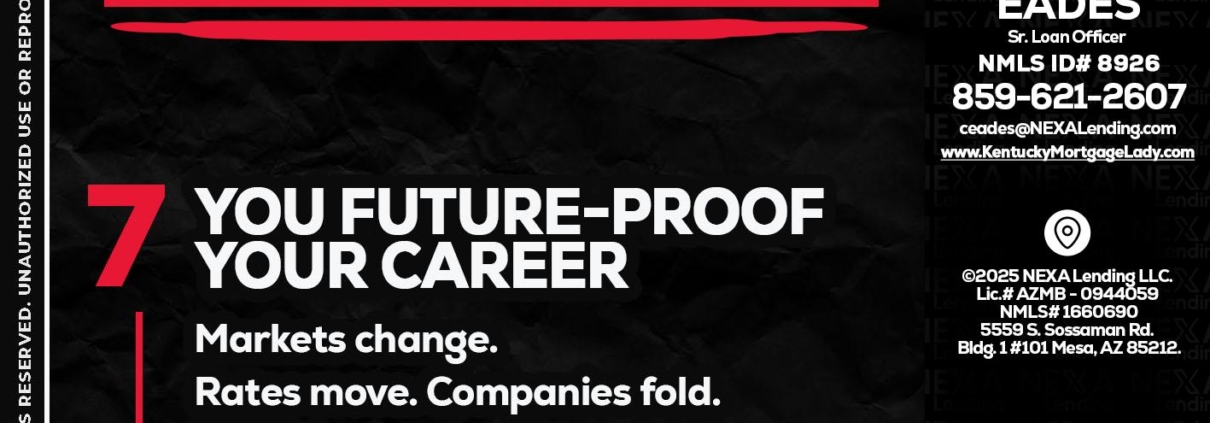 7 THINGS (7) - Cynthia Eades -Sr. Loan OfficerHi, my name is Cynthia Eades. I’m a Loan Officer with NEXA Lending LLC., offering personalized mortgage solutions, fast customized quotes, great rates and service with integrity.