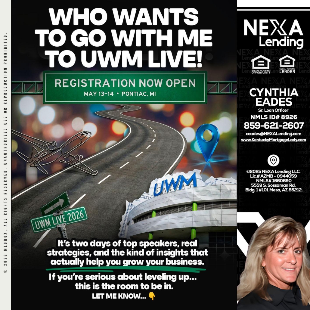 WHO WANTS - Cynthia Eades -Sr. Loan OfficerHi, my name is Cynthia Eades. I’m a Loan Officer with NEXA Lending LLC., offering personalized mortgage solutions, fast customized quotes, great rates and service with integrity.