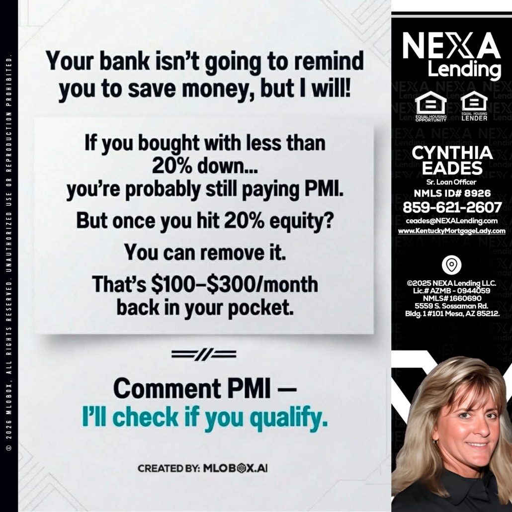 Hi, my name is Cynthia Eades. I’m a Loan Officer with NEXA Lending LLC., offering personalized mortgage solutions, fast customized quotes, great rates and service with integrity.